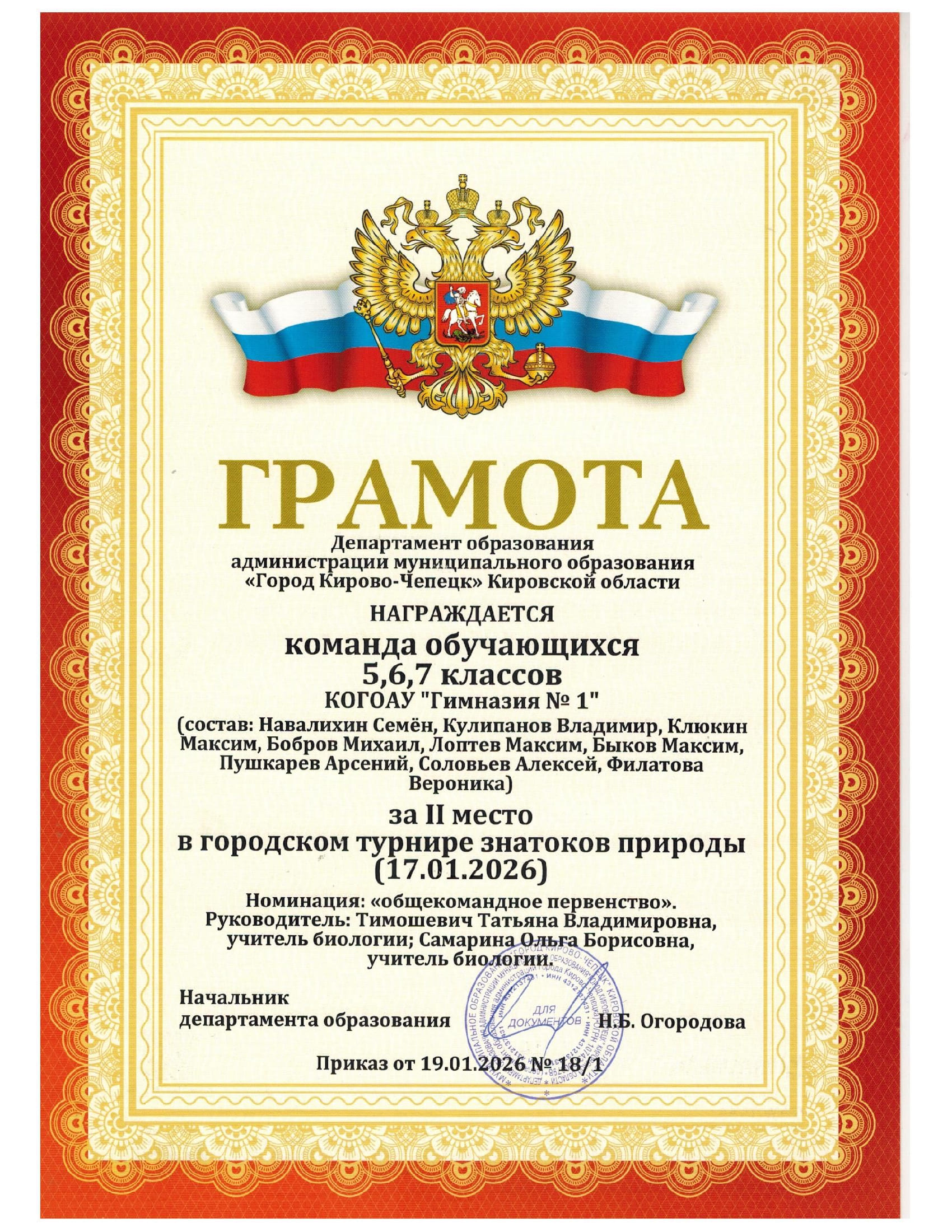 2026 2 место знатоки природы общекомандный